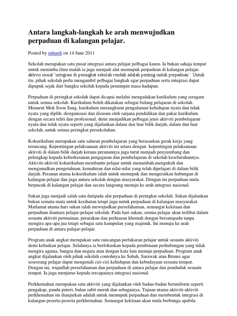 Langkah Wujudkan Perpaduan Kaum Pdf